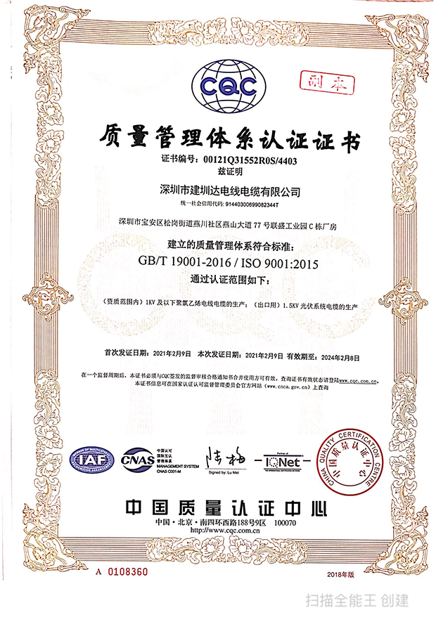 深圳建圳達(dá)電線電纜有限公司,成立于2000年,是一家電線電纜制造商,我們通過(guò)了世界各地不同市場(chǎng)的多數(shù)認(rèn)證,如:CCC、RoHS、CB、SAA、TUV、VDE、PSE、BPS、UL、CSA。我們根據(jù)定制產(chǎn)品不斷更新新的認(rèn)證。經(jīng)過(guò)數(shù)十年的發(fā)展,我們與來(lái)自世界各地的客戶(hù)建立了長(zhǎng)期的合作關(guān)系。我們?cè)?jīng)是菲律賓機(jī)場(chǎng),,柬埔寨的電力站,美國(guó)的醫(yī)院,工廠,埃塞俄比亞的水電站項(xiàng)目。我們是一家值得信賴(lài)的電線供應(yīng)商。